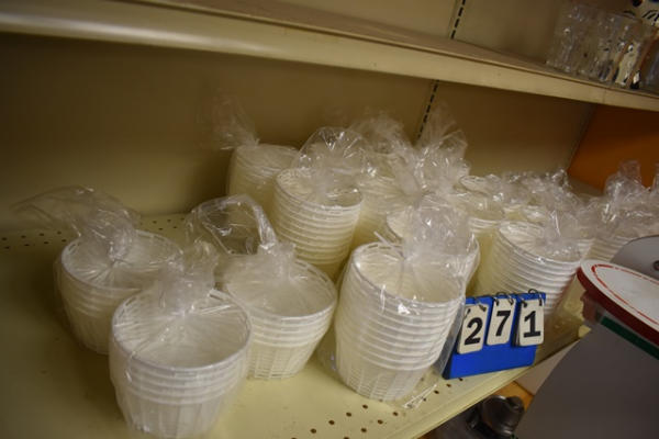 Contents of shelf consisting of plastic baskets