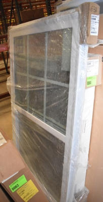 Vinyl single hung white w/grilles, 38 x 60