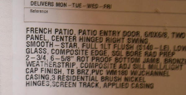 Ext 6/0 x 6/8 French patio door RH