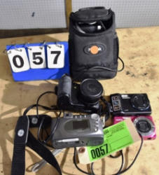 Lot of electronics consisting of assorted cameras, camera bag, charger, etc.