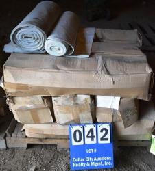Pallet of what appears to be mostly rolls of plastic, 20' x 100', approx. 10 rolls +/-