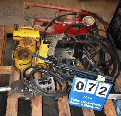 Pallet including hydraulic pump, ___________ heavy duty hydraulic jacks, hoses, etc.
