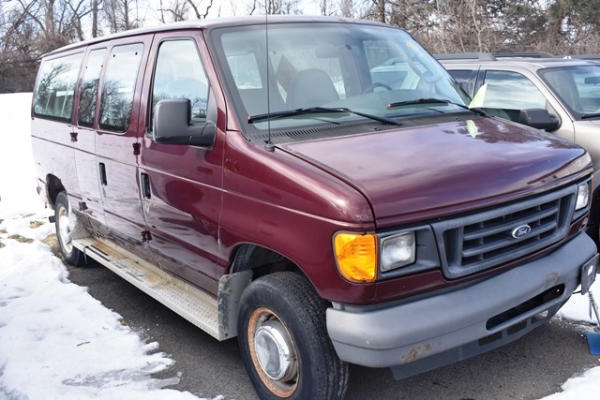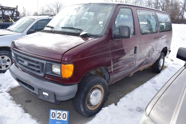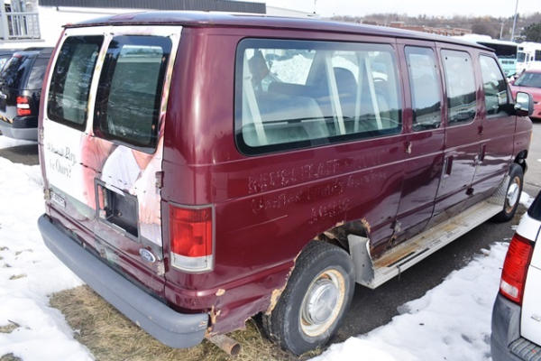 2006 Ford van, 8 cylinder gas motor, approx. 92,342.6 miles, VIN: 1FBNE31LX6HA80262, missing catalytic converters, starts, runs and moves, may need to be jump started