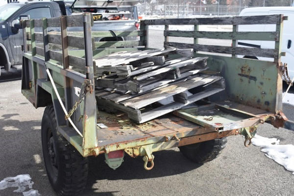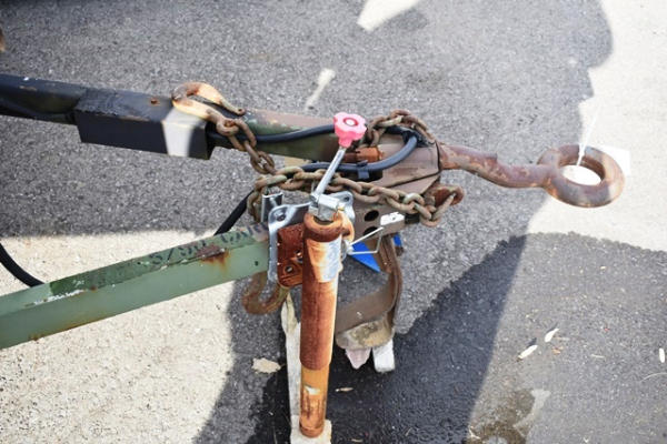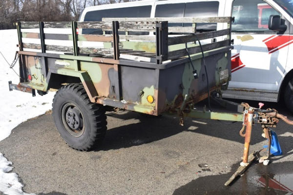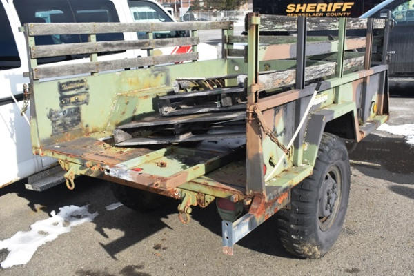 Tooele Army Depot trailer, SN: 6B79868, approx. 4' x 8', pintle hook receiver, sold as is, parts only, no paperwork available.