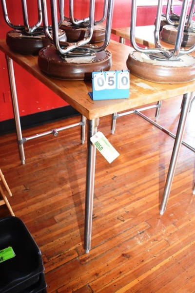 Table with stainless steel legs, high top table, 38" x 48"