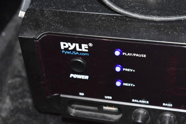 Pile PT390BTU, 300 watt digital Bluetooth, AM/FM Stereo Receiver, a Sonance Model SS4VC and 8 Bose speakers