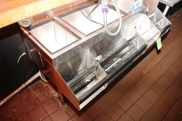Under-bar sink with ice bins and speed racks, 60" x 30" x 37"