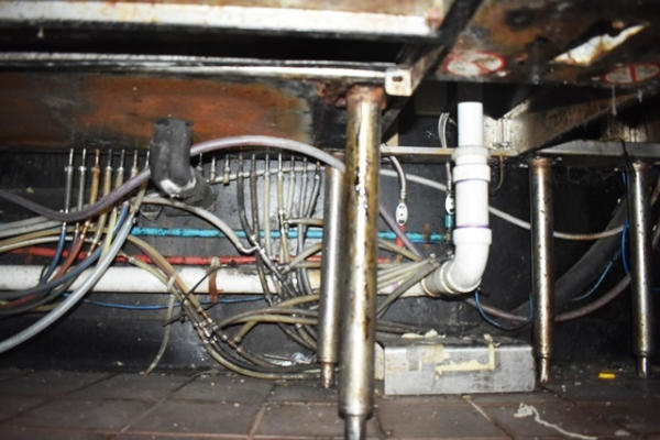 Under-bar sink with ice bins and speed racks