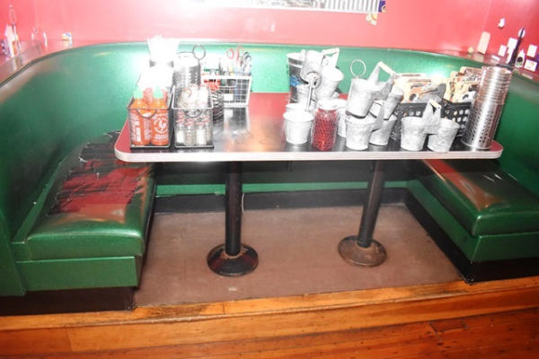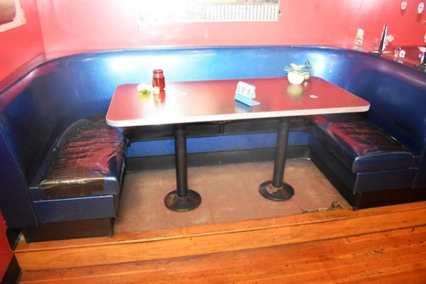 Lot of 4 U-shaped booths with tables and sneeze guards. Buyer must supply a certificate of insurance prior to removal.