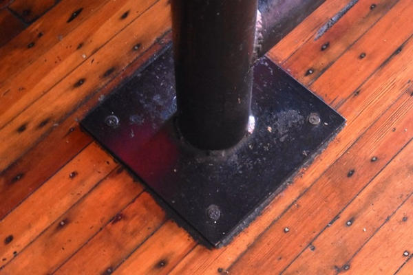 30" x 72" high top table, bolted to floor (CUSTOMER MUST REMOVE)