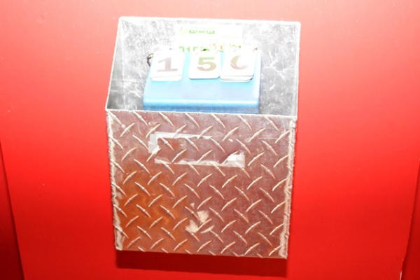 Menu holder, appears to be aluminum diamond plate, 13" x 10"