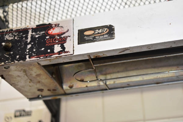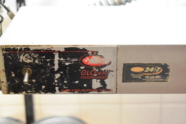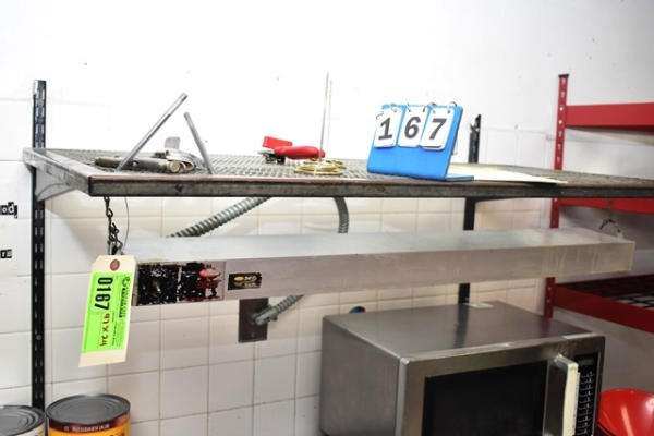 Wall-mount shelving unit with Glow Ray Food Warmer, 47" long