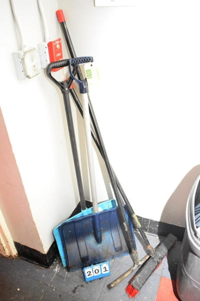 Lot of brooms and shovels