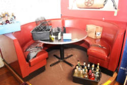 Lot of 4 U-shaped booths with tables and sneeze guards. Buyer must supply a certificate of insurance prior to removal.