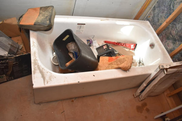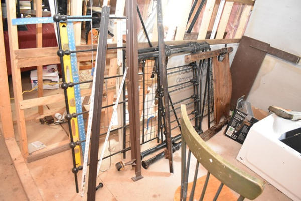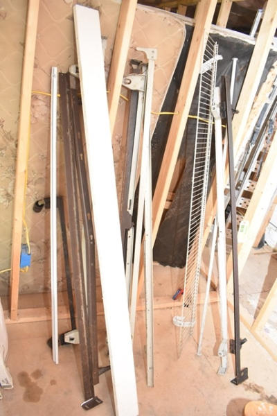 Room lot consisting of bed frames, bed frame parts, metal tub