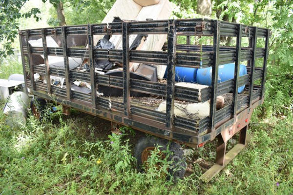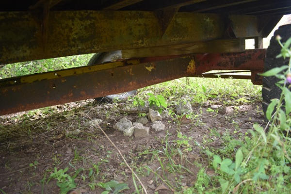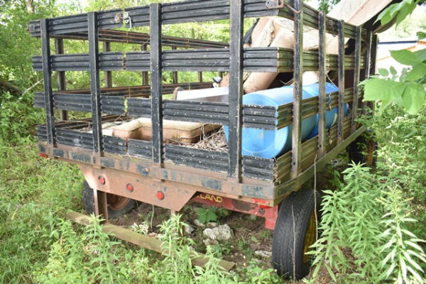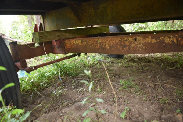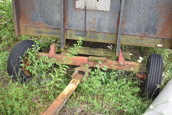 Hay wagon frame with flat bed body, approx. 13' long