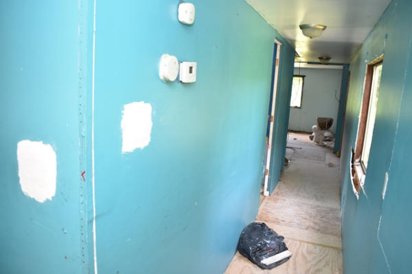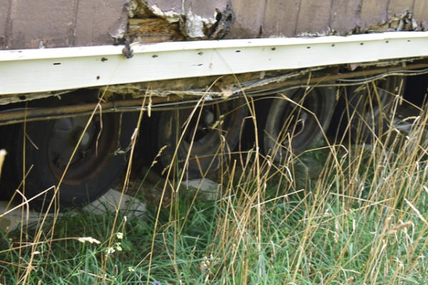 Mobile Home with kitchen, living room, 2 bedrooms, 1 bathroom, approx. 13' wide x approx. 65'. It does have a tongue and axles underneath it.