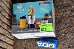 Magic Bullet. Consists of Motor Base, Tall Cup, Short Cup, Etc. Located at 1 Guy Park Avenue Amsterdam, NY 12010.