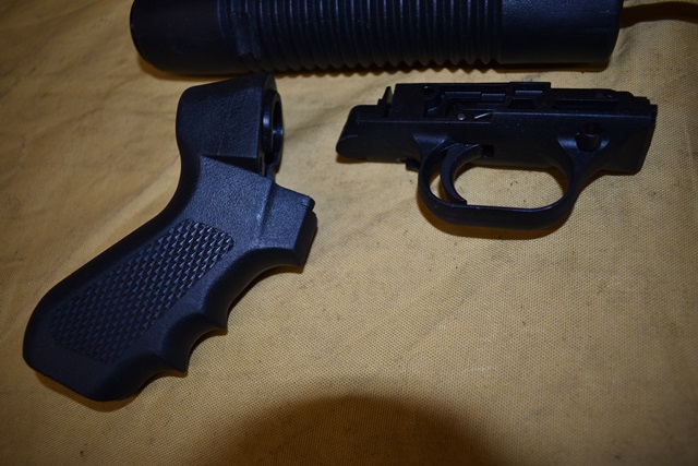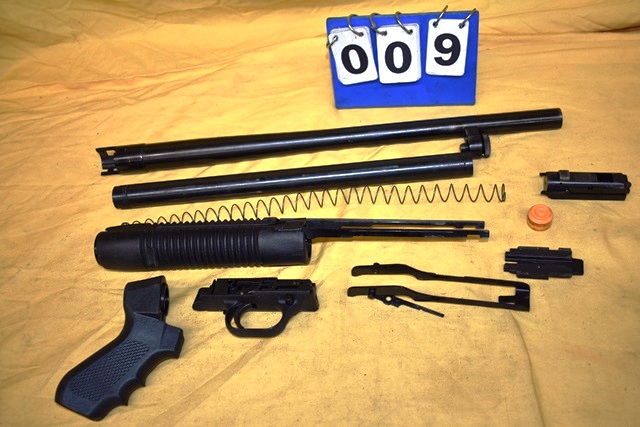 Mossberg 500 12 Gauge Parts Kit. Includes 18 1/2" Barrel, Pistol Grip, Tube, Tube Spring, Trigger Assembly, Etc.