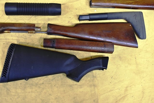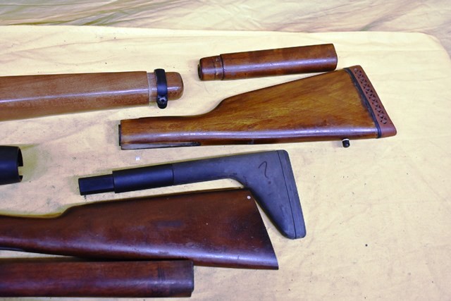 Lot of Various Firearm Furniture Wood/Synthetic Including Remington 870 Pistol Grip, Mossberg 500 12 Gauge Stock, Ruger 22 Stock, Etc.