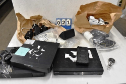 Security Cameras, Mounting Hardware, Cables, a Havis In-Car Laptop Tray