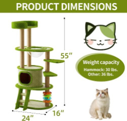#66 - Oceskyha Cat Tree, Modern Cat Tree Tower for Indoor Cats - 55"" Tall Density board Condo with Hammock, Scratching Post and Toy for Small Large Cats (Cat Turntable-T21+)