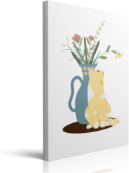 #94 - Framed Fine Yellow Cat And Flower Floral Canvas Wall Art Funny Toilet Decor For Living Room Bathroom Home Office Artwork Gift Ready To Hang (12"x16")