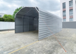 11ft tall in front 9ft tall in back 25ft long,12ft wide Mainframe: 14 Gauge Typically 2" Square Tube Sheet Metal Gauge: 26 Gauge Skid mounted base Pull eyelets on both sides Concrete Anchor: 6-inch long, 1/2in diameter Roof color: Cream Beautiful appearance, different colors Service life: 15~20 years Weight: 1,168lbs. Package Size: 39in. X 85in. X 15in. |